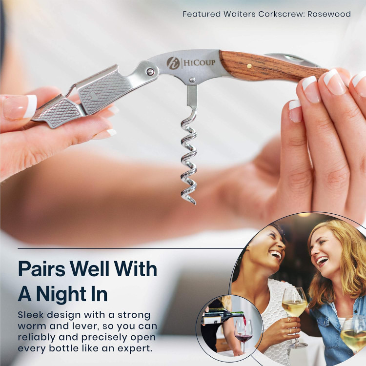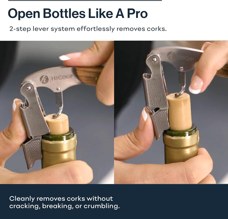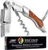 درب بازکن بطری نوشابه Hicoup - دربازکنهای حرفهای برای بطریهای نوشیدنی با برشدهنده فویل و جداکننده درب - کلید دستی نوشیندی برای پیشخدمتها، گارسونها، متصدیان بار و مصارف خانگی - استیل ضد زنگ با روکش چوب صندل