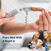 برش فویل دندانهدار - لبه دندانهدار داخلی روی برش فویل شراب داخلی، امکان برداشتن بدون درز چوب پنبه را فراهم میکند. مجموعه درب بازکن شراب همه کاره برای پیشخدمتها و دوستداران شراب در همه جا.