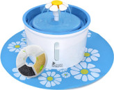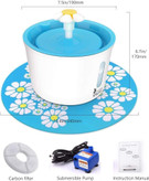 فواره آب حیوانات خانگی با پنجره تنظیم سطح آب، فواره آب گربه فوق العاده بی صدا، سالم و بهداشتی، به سبک گل، فواره آبخوری ۳ حالته، با ۱ فیلتر کربنی و ۱ زیرانداز سیلیکونی بزرگ، آبی