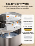 فولاد ضد زنگ ۳۰۴ و سیستم چند فیلتره: ساخته شده از فولاد ضد زنگ بادوام و با کیفیت بالا، که برای حیوانات خانگی ایمن و بهداشتی است و از دوستان پشمالوی شما در برابر آکنه گربه محافظت میکند و همچنین تمیز کردن و نگهداری آن را آسان میکند. این آبخوری با یک سیستم فیلتراسیون گردشی ۴ لایه، آب خالص را حفظ میکند و تضمین میکند که هر جرعه تازه و تمیز است.