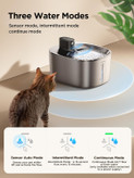سه حالت آب: ۱. گزینه حسگر: با تشخیص حرکت شروع به کار میکند. ۲. زمانبندی شده: هر ۱۵ دقیقه آب به مدت ۱۵ ثانیه جاری میشود و این چرخه تکرار میشود. ۳. حالت استاندارد: جریان ثابت آب جاری (فقط در صورت اتصال کابل برق معتبر است).