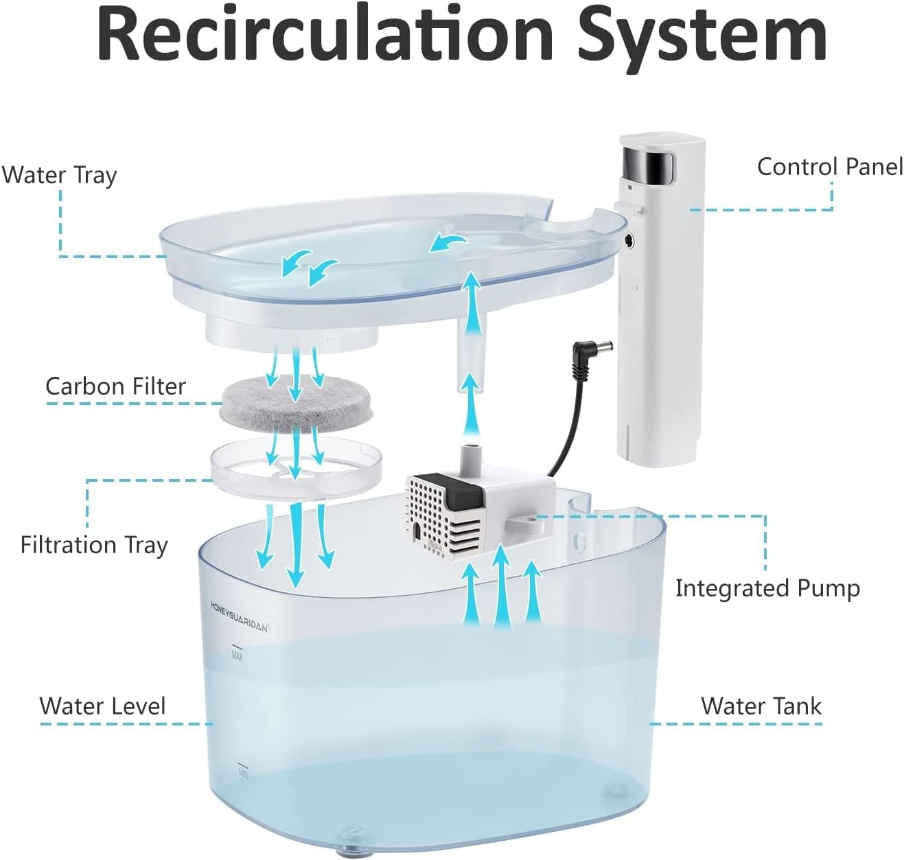 پمپ جدید HoneyGuaridan با صدای بسیار کم (حدود 40 دسیبل) طراحی شده تا در محیطهای خانگی هیچ مزاحمتی ایجاد نکند. ساختار داخلی نوآورانه از ورود مو، ذرات غذا و آلودگی به پمپ جلوگیری میکند، که باعث افزایش طول عمر دستگاه میشود. توجه: برای نظافت، فقط پوشش پمپ را بردارید و از جدا کردن پروانه خودداری کنید تا از تغییر شکل آن جلوگیری شود.