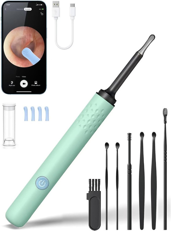 گوش پاک کن با دوربین 1080P HD، اتوسکوپ با نور، کیت حذف جرم گوش برای آیفون، آیپد، گوشیهای اندروید (سبز) green