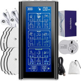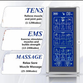 A/B Dual Channels TENS: میتوانید حالتها و شدتهای جداگانهای را برای کانال A و کانال B به طور همزمان تنظیم کنید، همچنین میتوانید به شما اجازه استفاده از آن را با خانواده یا دوستانتان در کنار هم بدهید. فناوری شبیهسازی بدن انسان و کنترل هوشمند میکروکامپیوتری، کانالهای دوگانه مستقل که ۱۰ پد واحد TENS (الکترود) را کنترل میکنند تا به تحریک عضلات و تسکین درد کمر، مفاصل، گردن، زانو، شانهها، مچ پا، پاها، مچ دست و آرنج و غیره کمک کنند.دو حالت TENS و EMS بر روی یک دستگاه TENS متمرکز شده اند تا از سلامت شما محافظت کنند. تحریک الکتریکی عصب از راه پوست (TENS) حالت تسکین درد: TENS یک روش غیرتهاجمی و بدون دارو برای کنترل درد است. TENS از تکانه های الکتریکی کوچکی استفاده می کند که از طریق پوست به اعصاب ارسال می شود تا درک درد شما را اصلاح کند. در اکثر بیماران، در کاهش یا از بین بردن درد موثر است و امکان بازگشت به فعالیت عادی را فراهم می کند. یک مسکن بی خطر که توسط فیزیوتراپیست ها استفاده می شود و توسط پزشکان برای بیش از ۳۰ سال تجویز می شود. تحریک الکتریکی عضلات (EMS)حالت تهویه عضلات: EMS یک روش جهانی پذیرفته شده و اثبات شده برای درمان آسیب های عضلانی است. با ارسال پالس های الکترونیکی به عضله ای که نیاز به درمان دارد کار می کند. این باعث می شود که ماهیچه به صورت غیر فعال ورزش کند. این به طور گسترده ای در بیمارستان ها و کلینیک های ورزشی برای درمان آسیب های عضلانی و برای آموزش مجدد عضلات فلج، برای جلوگیری از آتروفی در عضلات آسیب دیده و بهبود تون عضلانی و گردش خون استفاده می شود.