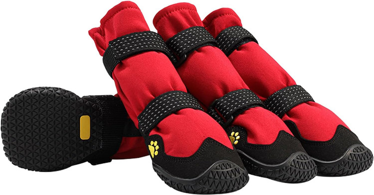 چکمه سگ GLE، کفش سگ ضد آب با بند بازتابنده، آستر گرم و زیره ضد لغزش، چکمه سگ مناسب برای برف و باران سایز بزرگ - قرمز