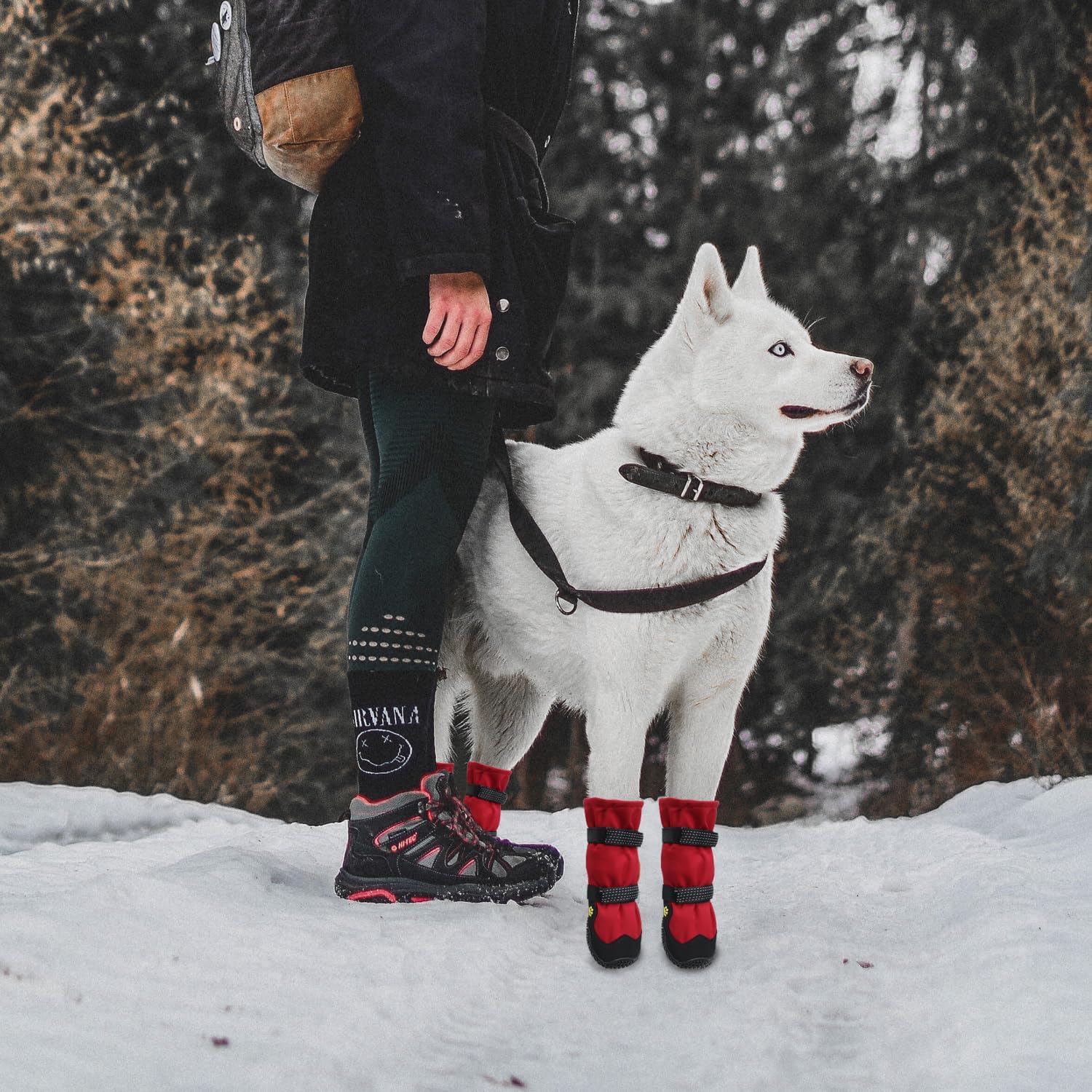 چکمه سگ GLE، کفش سگ ضد آب با بند بازتابنده، آستر گرم و زیره ضد لغزش، چکمه سگ مناسب برای برف و باران سایز بزرگ - قرمز