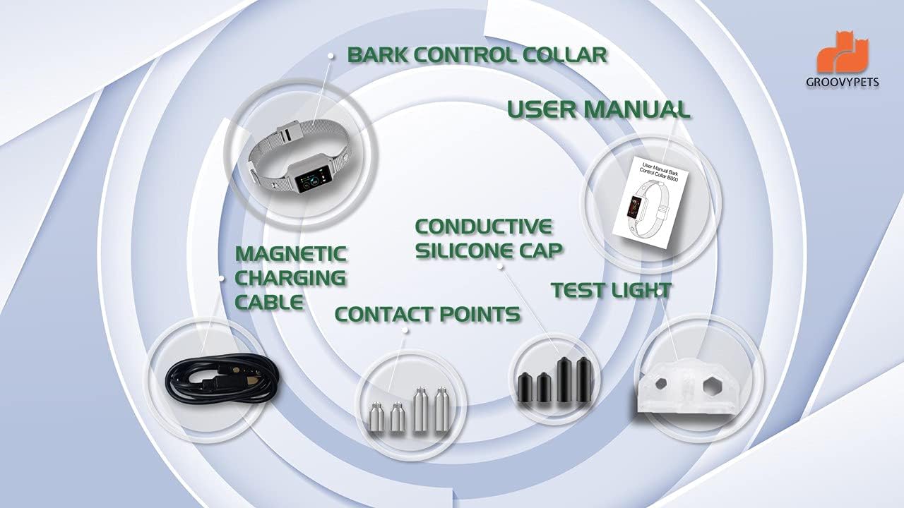 قلاده هوشمند ضد پارس GROOVYPETS با صفحه لمسی و حالت ,ویبره بدون شوک الکتریکی ، لرزشی صوتی و موثر