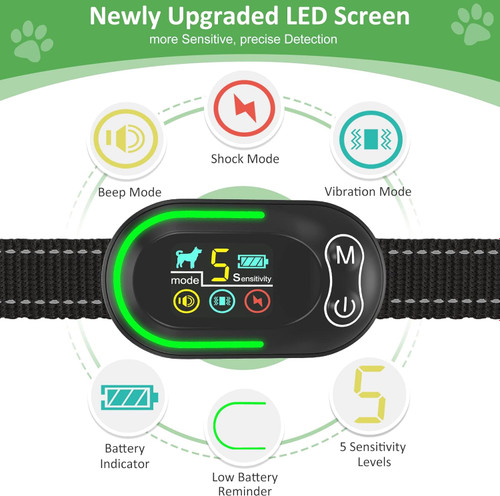 قلاده ضد پارس سگ: شوک و ویبره دار قابل شارژ برای سگهای بزرگ، متوسط و کوچک - دستگاه کنترل پارس ضد آب هوشمند با 5 حساسیت قابل تنظیم - مشکیناموجود